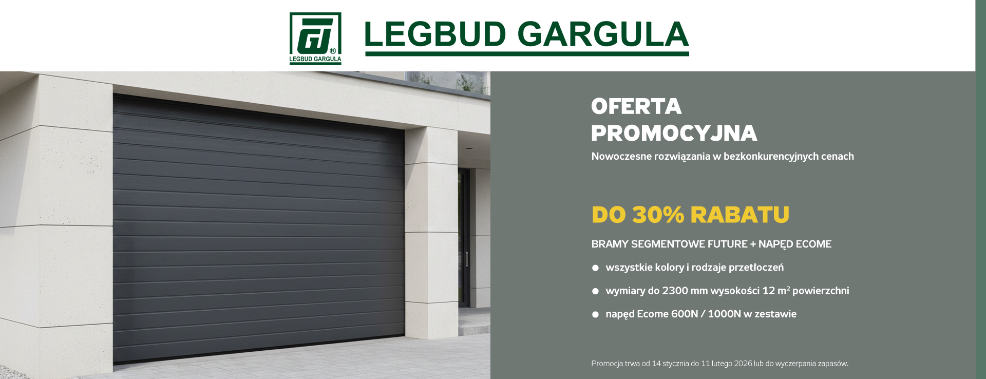 Będąc doświadczonym producentem bram i ogrodzeń, a także stolarki aluminiowej czy garaży, staramy się umożliwić zakup naszych produktów wszystkim zainteresowanym. Miło nam poinformować, że udostępniliśmy do dyspozycji naszych klientów sklep internetowy z ofertą produktów LEGBUD GARGULA dostępną online. Oferujemy bramy garażowe uchylne i segmentowe wraz z dostawą pod wskazany adres, a także części zamienne i podzespoły do bram.