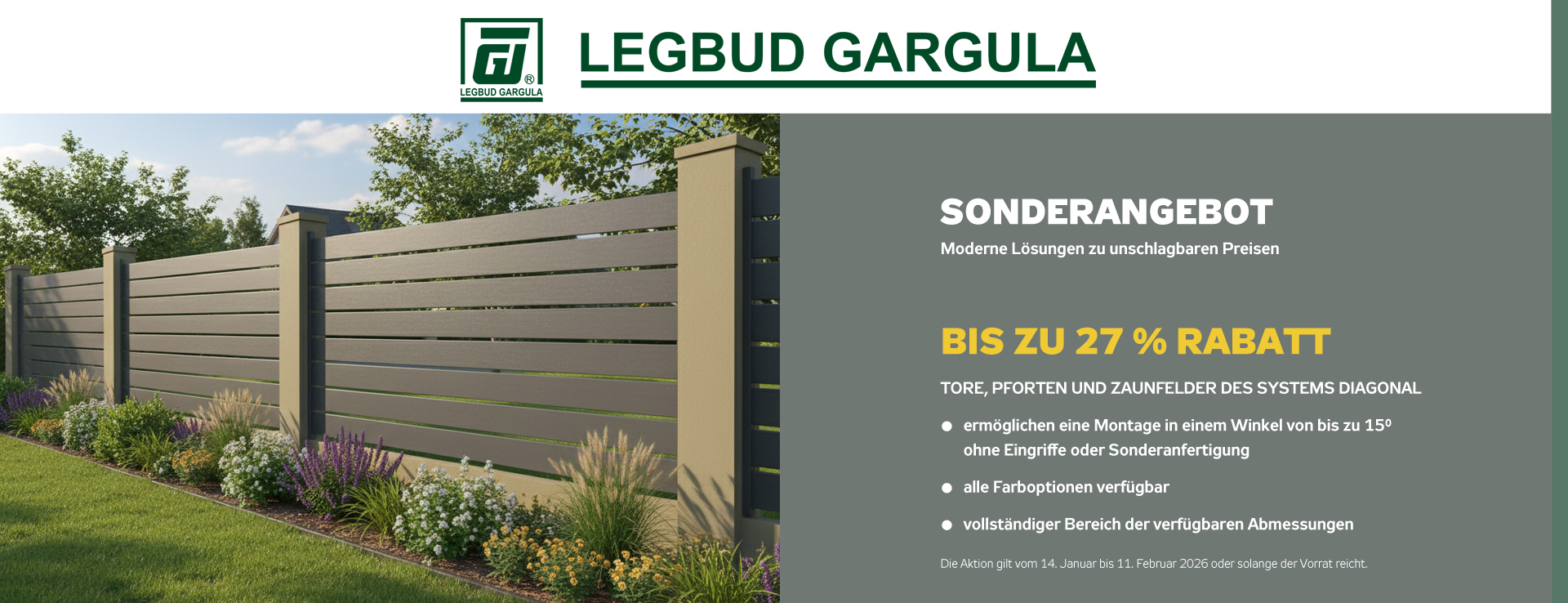 Das führende Unternehmen der GARGULA Group ist LEGBUD GARGULA – ein bedeutender Hersteller von Toren, Zäunen, AL/PVC-Bauelementen, Carports und Garagen auf dem nationalen wie auch internationalen Markt.